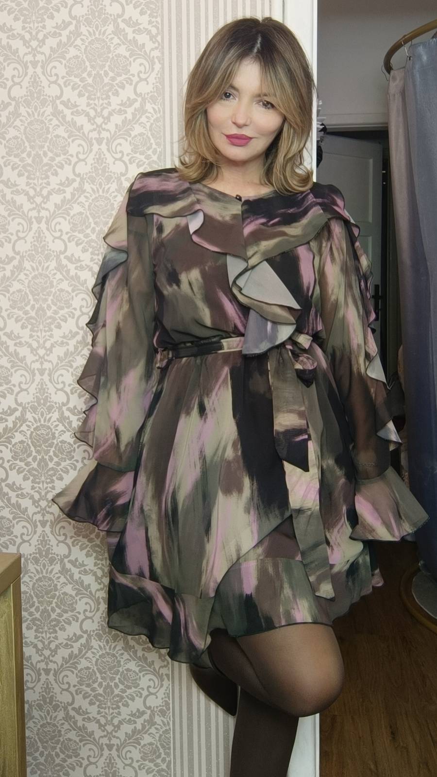 La modella in foto è alta 1,78 cm e indossa una taglia S.