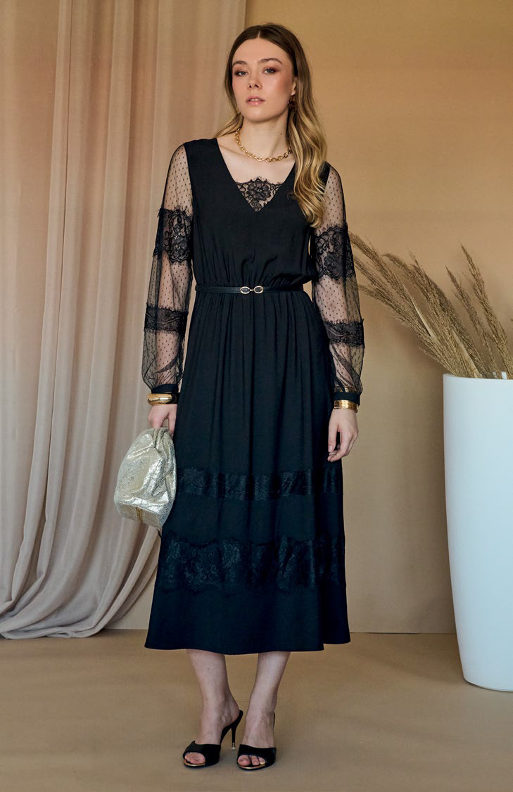 abito lungo maniche pizzo
