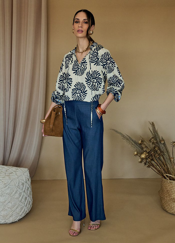 Blousa in viscosa navy e ivory