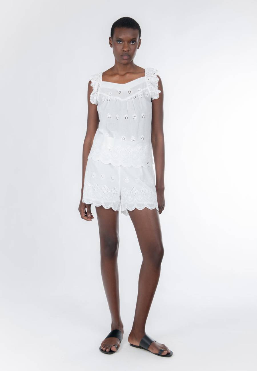 Questa blusa in cotone Sangallo ha un taglio regular, una scollatura squadrata a V e delle spalline con rouches. È facile da abbinare: indossala con i suoi shorts in co-ord per un look estivo che ispira subito Costiera Amalfitana. Per gli accessori scegli degli occhiali da sole e dei sandali con zeppa.