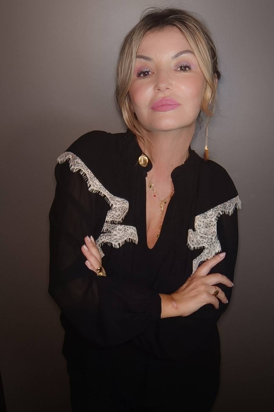 La rouge con pizzo in contrasto conferisce a questo capo eleganza e stile impeccabile.