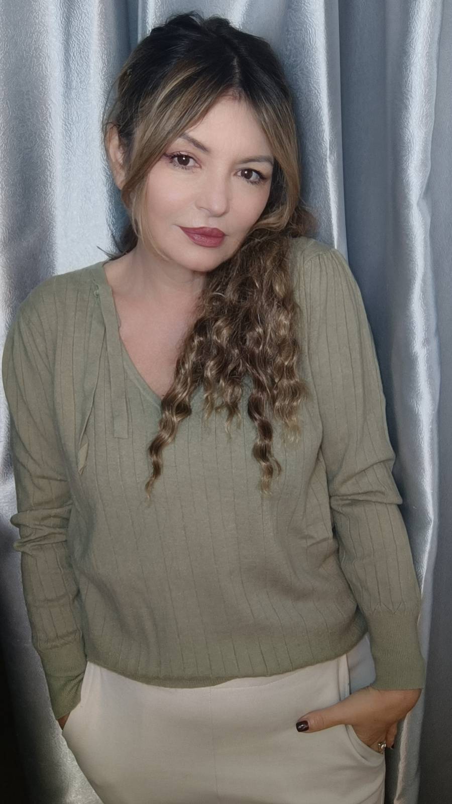 Questa maglietta in viscosa si distingue, oltre alla morbidezza del filato, anche per la sua lavorazione effetto finte coste, la spallina arricciata e il fiocco cucito sul lato della scollatura a V