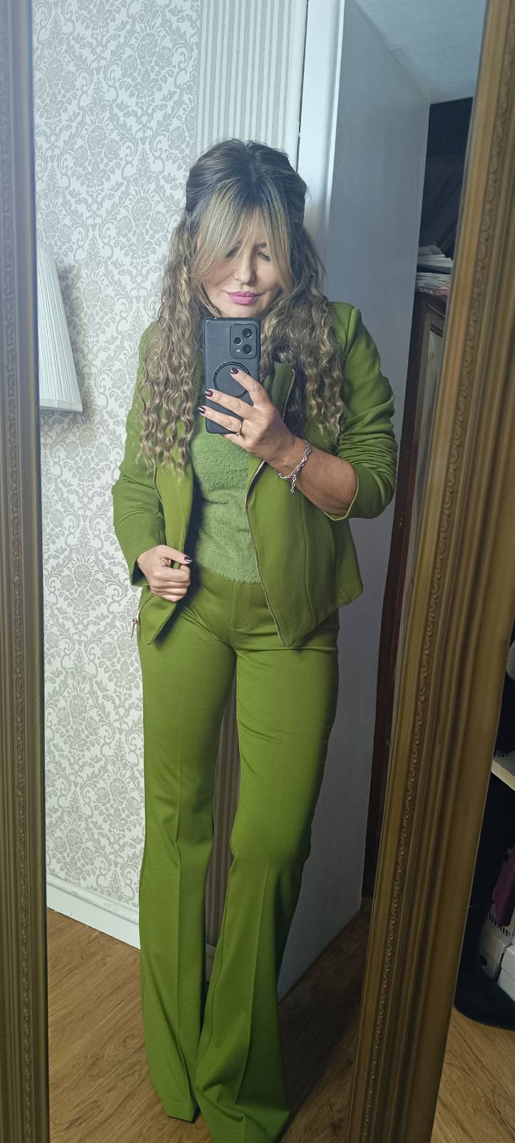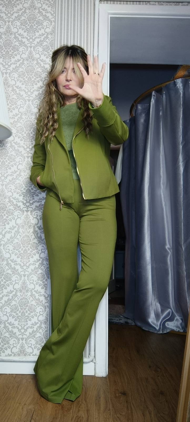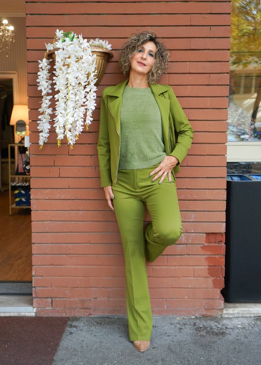 Ideale abbinato alla sua giacca per un completo in gran stile messo in risalto dal colore verde oliva.