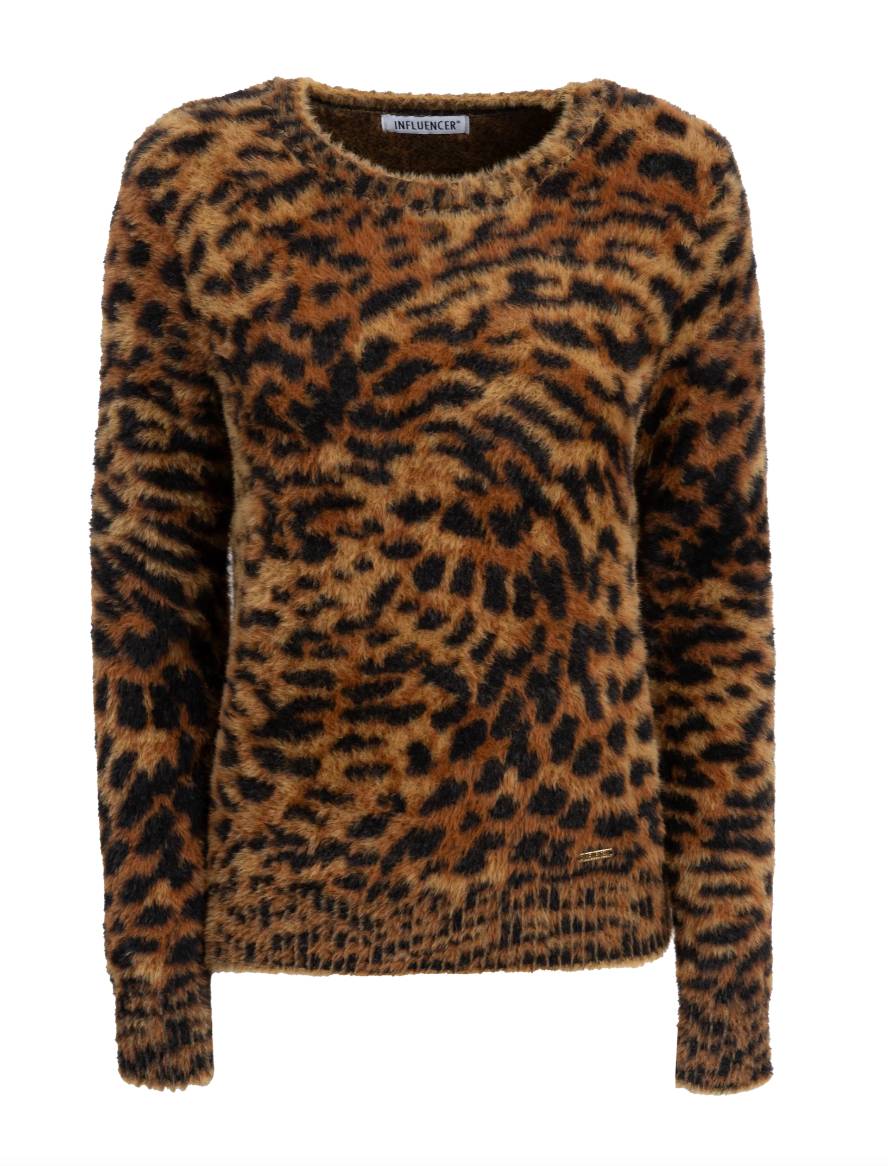 Questa maglia con fantasia animalier, si presenta con una superficie effetto pelo che ti terranno al caldo anche nelle giornate invernali più fredde. La morbidezza e la sofficità di questa maglia ti faranno sentire coccolata tutto il giorno.